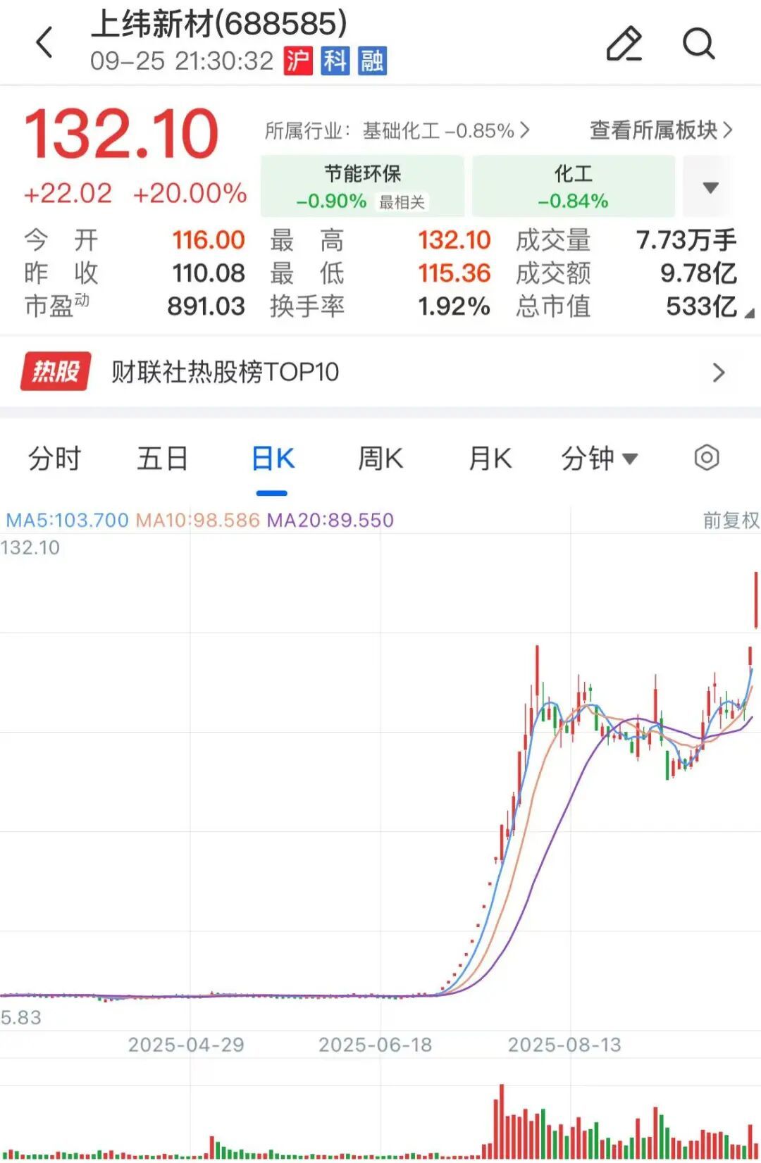 上緯新材(688585.SH)發(fā)布公告,在2025年7月9日至9月25日期間,公司股票多次出現(xiàn)交易異常波動(dòng)以及嚴(yán)重異常波動(dòng)的情況,且最近兩個(gè)交易日連續(xù)漲停。