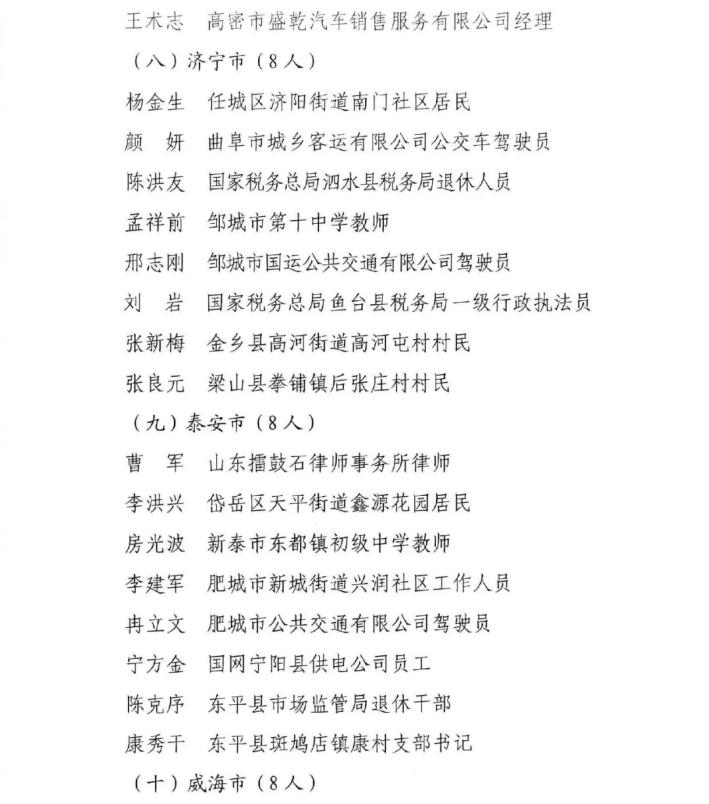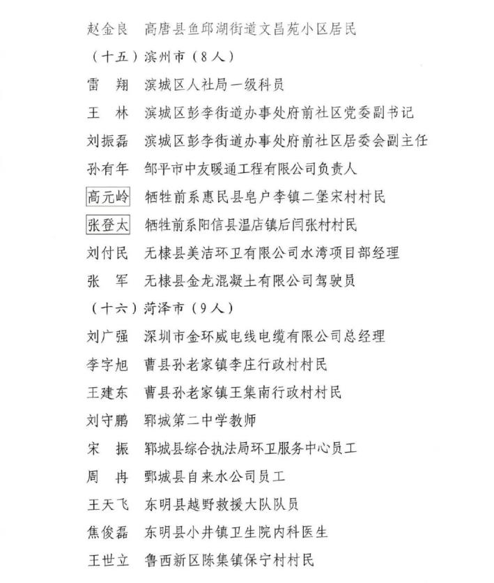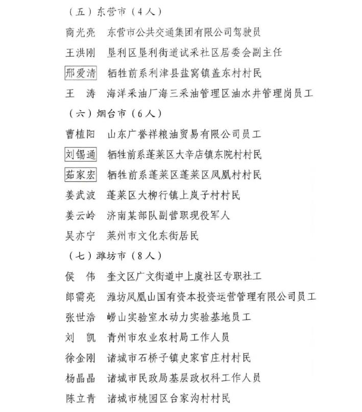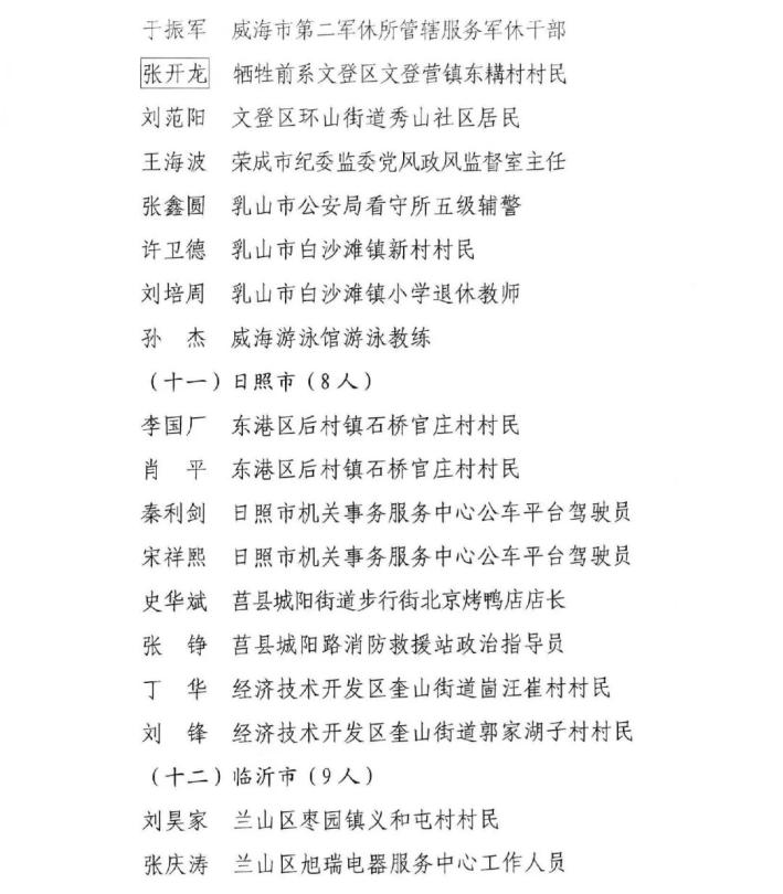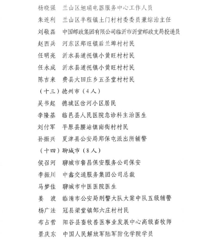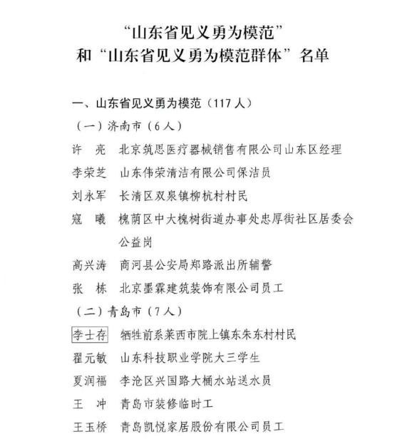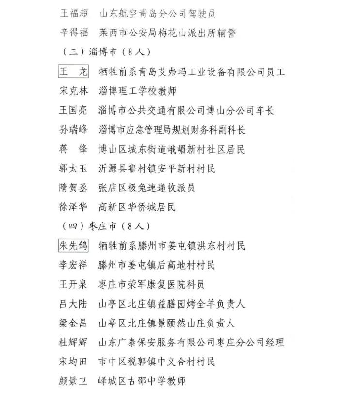 山東省見義勇為模范及模范群體名單揭曉