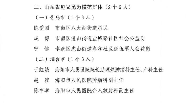 原標(biāo)題:《“山東省見義勇為模范”和“山東省見義勇為模范群體”名單》