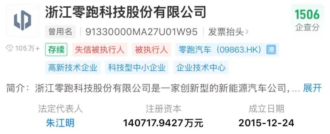 浙江零跑科技股份有限公司成立于2015年12月24日,注冊資本為140717.9427萬元,法定代表人為朱江明。