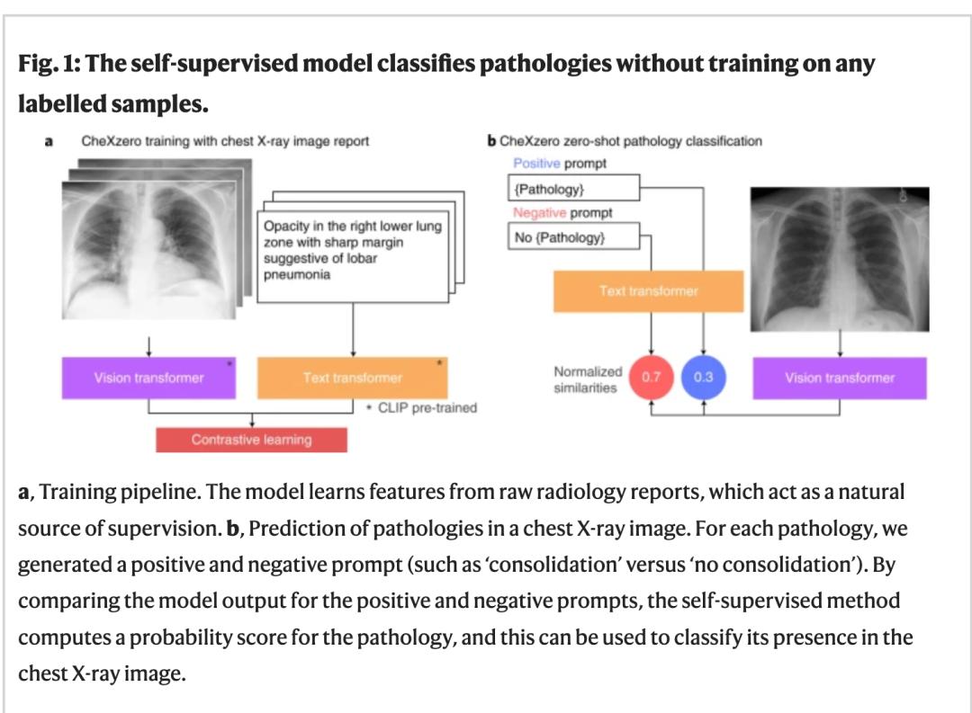 閱讀大量文獻(xiàn)后會發(fā)現(xiàn),很多論文中有試驗(yàn)方法的流程圖。重點(diǎn)關(guān)注流程圖節(jié)點(diǎn)和實(shí)現(xiàn)途徑,能節(jié)省閱讀文獻(xiàn)文本和理解內(nèi)容的時間。比如BCI幾年前的頂刊,通過流程圖展示了腦機(jī)控制下肢與上肢外骨骼的技術(shù)實(shí)現(xiàn);文獻(xiàn)中針對多模態(tài)醫(yī)學(xué)影像的識別,用圖說明了使用Chexzero算法完成0訓(xùn)練達(dá)到肺結(jié)節(jié)識別的過程。這些圖能清晰呈現(xiàn)技術(shù)棧、算法和實(shí)驗(yàn)結(jié)果。