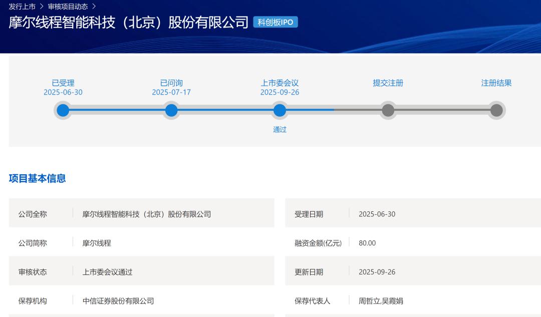 摩爾線程智能科技(北京)股份有限公司(簡稱:“摩爾線程”)今日IPO過會,準備在科創(chuàng)板上市。