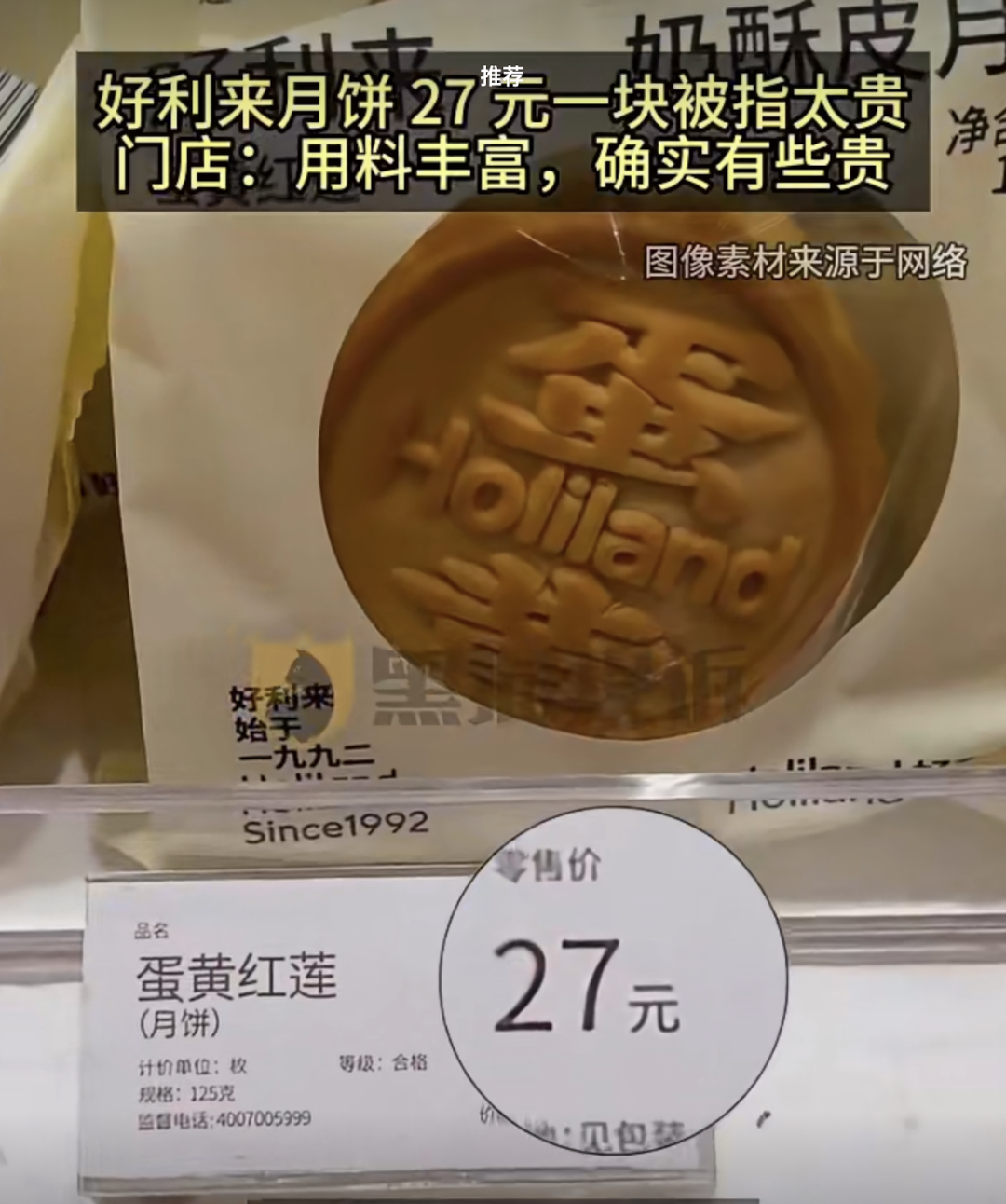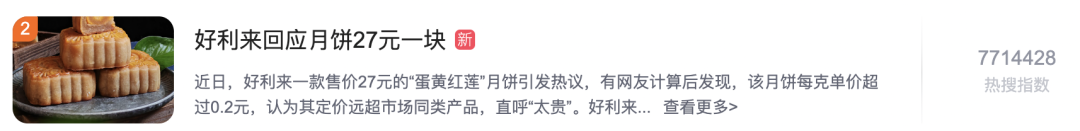 9月26日,知名烘焙品牌好利來一款售價27元的“蛋黃紅蓮”月餅引發(fā)廣泛關(guān)注,相關(guān)話題迅速沖上熱搜。