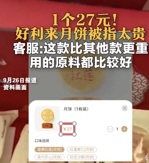 好利來門店回應27元一塊月餅價格質(zhì)疑