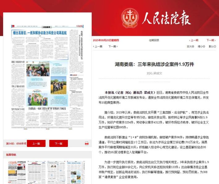 人民法院報(bào):湖南婁底三年執(zhí)結(jié)涉企案件達(dá)1.9萬(wàn)件
