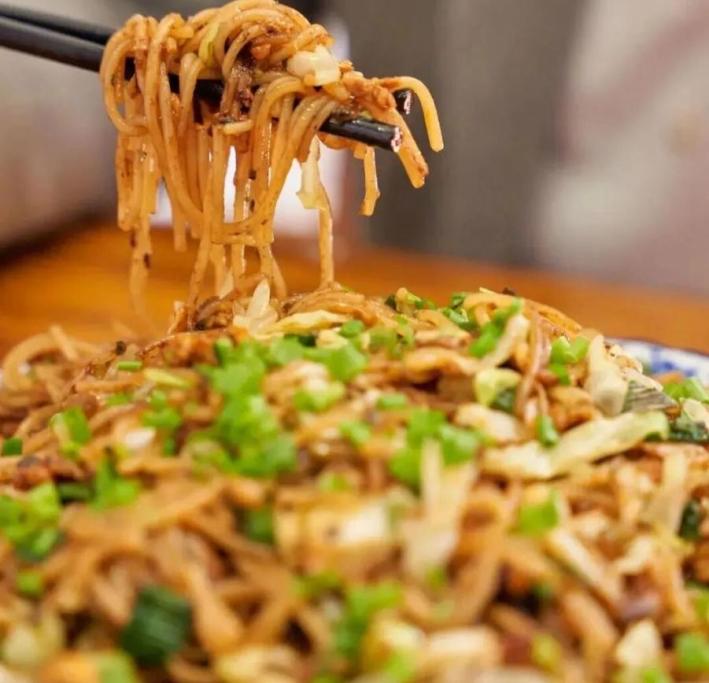 過(guò)去,攤販常在道旁支起煤餅爐。豬油下鍋“嗞啦”作響,包菜、豆芽、肉絲依次入鍋,鍋氣升騰時(shí)倒入煮好放涼的粉干,猛火翻炒,讓醬色均勻裹在粉干上,最后撒上辣末蔥花,香氣撲鼻。這是碳水與油脂的完美結(jié)合,也是市井生活中溫暖的盛宴。