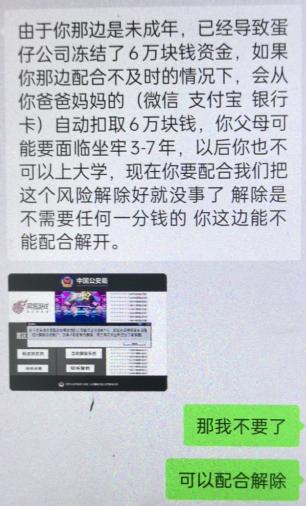客服還恐嚇道:“不及時配合解除,會從你爸爸媽媽賬戶扣6萬元,他們可能坐牢3 - 7年,你以后也不能上大學(xué)。”