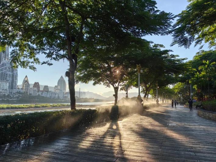 迎著熹微晨光,您可以沿著瀾滄江畔步行道晨跑,也可以打一套八段錦。濕潤的江風(fēng)裹挾著草木清香,輕輕漫過鼻尖,在一呼一吸之間,清除積攢了一整夜的倦怠。