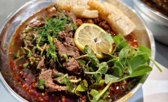勐混撒撇米線,這道用??嗄c熬制的“黑暗料理”,卻是許多人戒不掉的美味。入口酸苦辣的湯汁,尾調(diào)卻泛起回甘。攤主大姐還會熱心解鎖“吃撒撇要配烤牛皮”的隱藏吃法,最終各種滋味在口腔交融,讓人上癮。