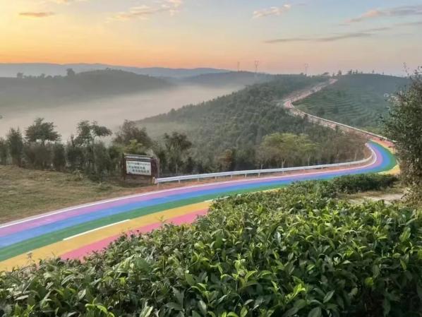在大渡崗萬畝茶園間悠閑騎行,車輪碾過露水浸潤的彩虹步道,萬畝“茶?!币槐倘f頃,茶香與薄霧交織成天然的香氛。說不定還能偶遇采茶人指尖翻飛,將一芽兩葉的晨光收進(jìn)竹簍。