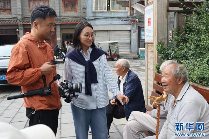 9月19日拍攝的采風(fēng)團(tuán)成員與居民交流場(chǎng)景。新華網(wǎng)發(fā)(楊榮選 攝)