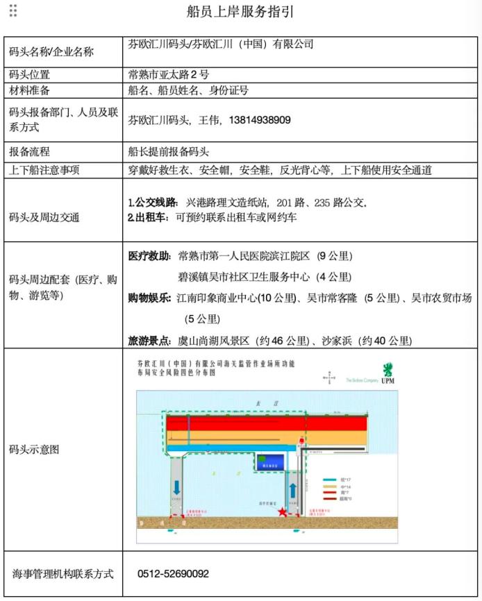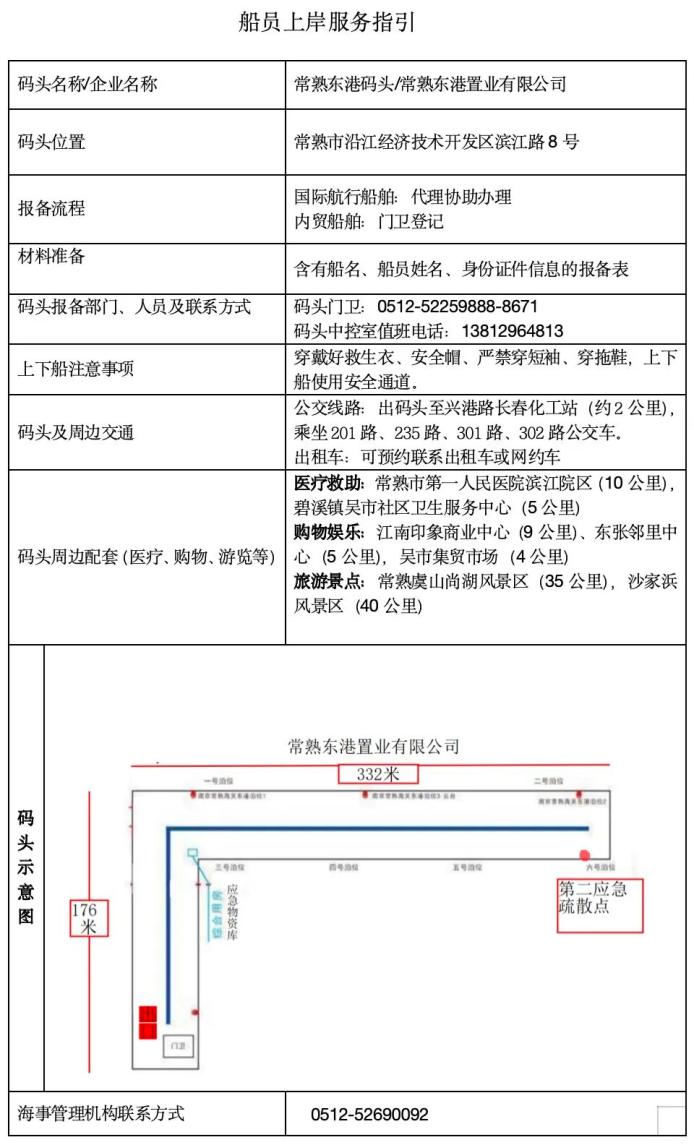 歡迎來(lái)到常熟港!為更好服務(wù)在常熟轄區(qū)航行、停泊和作業(yè)的船舶及船員,保障大家安全、便捷上岸,打通船員服務(wù)“最后一公里”,常熟海事局結(jié)合轄區(qū)碼頭實(shí)際,整合各碼頭上下岸流程、交通出行、便民服務(wù)及周邊生活設(shè)施等內(nèi)容,編制了《常熟海事局轄區(qū)碼頭船員上下岸服務(wù)指南》。請(qǐng)仔細(xì)閱讀并參照指南安排行程。