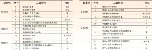2025年建制鎮(zhèn)綜合實(shí)力指數(shù)下設(shè)經(jīng)濟(jì)發(fā)展、創(chuàng)新活力、發(fā)展?jié)摿?、生態(tài)宜居、生活品質(zhì)等5個(gè)一級(jí)指標(biāo)、26個(gè)二級(jí)指標(biāo)。