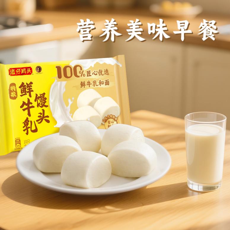 灣仔碼頭最近推出的“鮮牛乳饅頭”,強(qiáng)調(diào)“100%鮮牛奶和面,不加一滴水”。在城市家庭中,幾分鐘蒸制就能端上餐桌。這種“看得見的食材”與“便捷烹飪”結(jié)合,契合了快節(jié)奏生活下家庭早餐的需求。