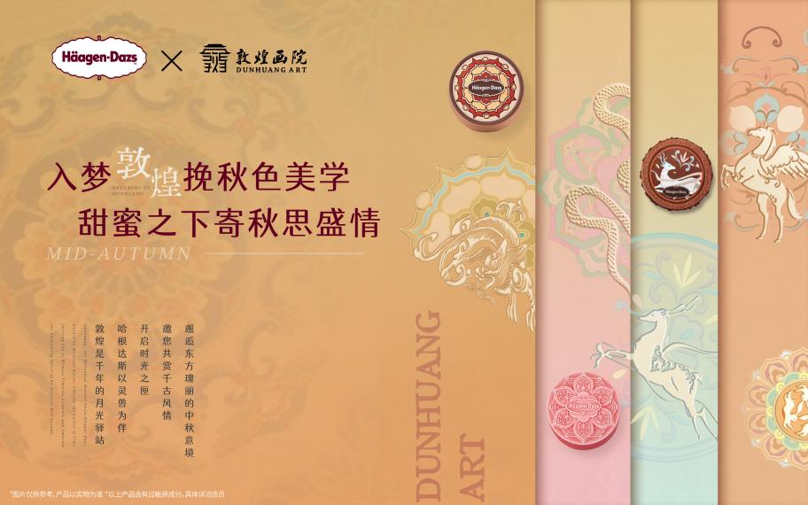 每年中秋是食品企業(yè)的“必爭(zhēng)之地”,節(jié)慶市場(chǎng)熱鬧,但單靠禮盒包裝或價(jià)格難以形成競(jìng)爭(zhēng)優(yōu)勢(shì)。今年中秋,哈根達(dá)斯與敦煌畫院合作推出“悅享金秋 圓滿敦煌”限定禮盒。禮盒設(shè)計(jì)融入敦煌五大瑞獸元素,分別寓意守護(hù)、力量、希望、圓滿與祥瑞。五種冰淇淋口味有了新的文化表達(dá),承載起東方美學(xué)的情感符號(hào),用文化敘事為節(jié)日消費(fèi)賦予新意義。