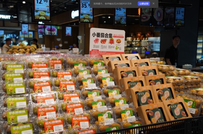 水果區(qū)開發(fā)了民生剛需、特色差異和年輕潮流三類商品,新增果切、果汁等輕食新品。結(jié)合應(yīng)季和消費場景,以荔枝等為爆品,構(gòu)建矩陣化商品體系,滿足年輕人社交、通勤等需求。