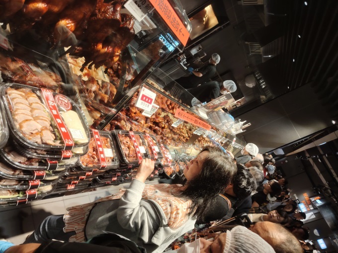 烘焙熟食區(qū)充滿了煙火氣。烘焙區(qū)的‘半斤榴蓮肉榴蓮千層’很受歡迎,50%的爆漿榴蓮肉搭配輕盈奶油和柔韌千層,一口下去能吃到半勺果肉,纖維感十足。熟食區(qū)有北京烤鴨、雙匯甜腸等美食,招牌豬蹄經(jīng)過(guò)鹵煮醬制,外皮Q彈軟糯,肉質(zhì)入味不柴,熱吃鮮嫩多汁,涼吃筋道有嚼勁,價(jià)格實(shí)惠,能滿足人們的口腹之欲。