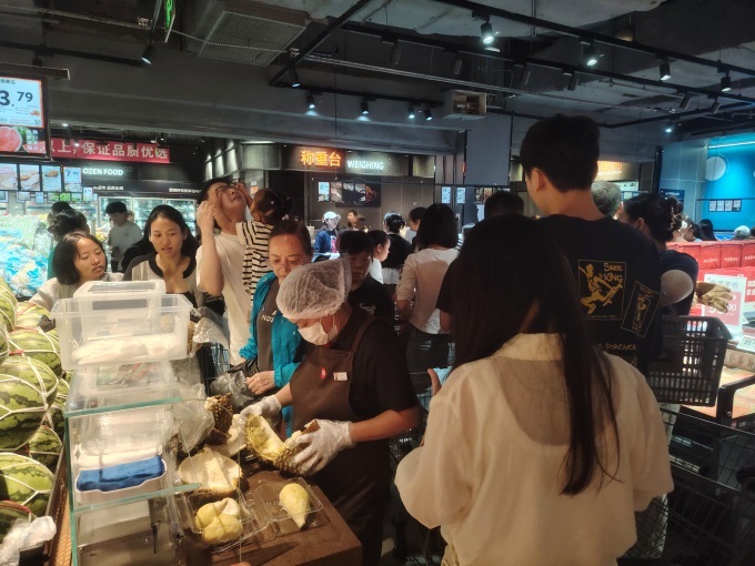 在商品方面,蔬菜區(qū)根據(jù)內(nèi)江居民的飲食喜好,在保障民生蔬菜供應(yīng)的基礎(chǔ)上,新增了定向種植蔬菜、有機(jī)蔬菜和高山菜。水果區(qū)推出了新疆西梅、恐龍蛋等特色水果。其中,海棠果富含膳食纖維、維生素和氨基酸,口感嫩滑、酸甜可口,適合各個(gè)年齡段的人食用;佳沃秘魯藍(lán)莓顆粒飽滿、甜度高、酸度低,深受消費(fèi)者喜愛(ài)。