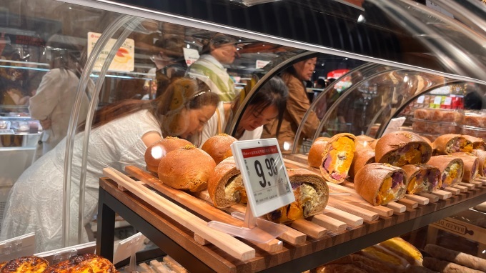 正在挑選商品的顧客張先生高興地表示:‘之前在摩爾店就看到一些胖東來(lái)的東西,像那個(gè)DL果汁和燕麥脆,很搶手,有時(shí)候去晚了就買不到。現(xiàn)在萬(wàn)達(dá)店也開(kāi)了,東西一樣好,品類好像還更豐富了,對(duì)我們住在周邊的居民來(lái)說(shuō)太方便了,家門口就能逛上‘胖永輝’!’另一位帶著孩子的劉女士則對(duì)烘焙區(qū)贊不絕口:‘這個(gè)金秋桂花口味的“豐收的喜悅”面包看著就很有食欲,孩子非要買。永輝現(xiàn)在自己的烘焙品確實(shí)做得不錯(cuò),用料好,價(jià)格也實(shí)在。’
