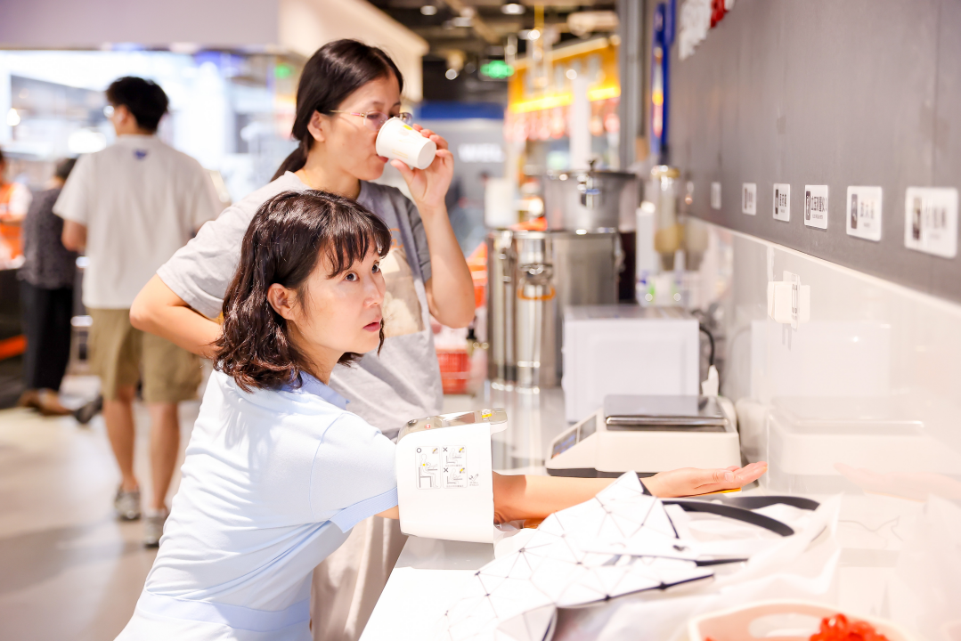 門店新設(shè)的一站式便民服務(wù)臺,配備了自助茶飲、直飲水、應(yīng)急藥箱、血壓測量儀、身高體重測量儀、免費(fèi)冰塊和微波爐等十余項(xiàng)貼心設(shè)施,滿足了不同年齡段人群的各類需求。這些小舉措讓超市不再只是交易場所,更成為了社區(qū)生活的溫暖樞紐。
