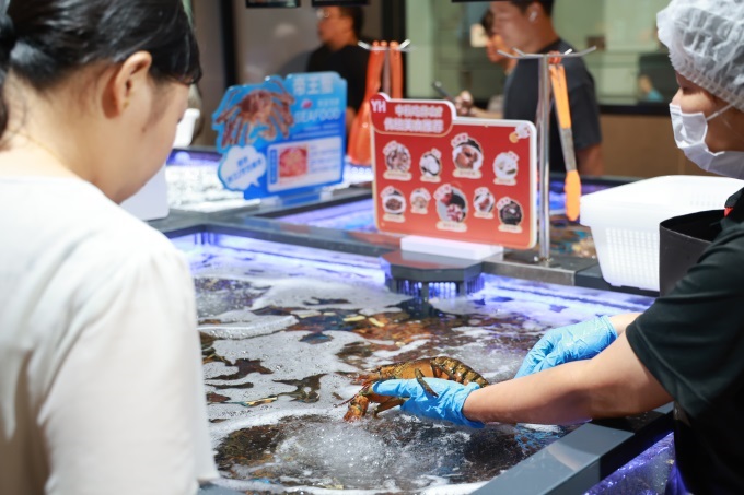 在服務(wù)方面,門店全面借鑒胖東來模式,提供各種貼心服務(wù)。肉禽柜臺(tái)可根據(jù)顧客需求進(jìn)行切絲、切片、絞肉、剝皮等處理;高端海鮮提供清洗、打氧和簡單烹飪服務(wù)(如清蒸、蒜蓉),確保食材處理方便、食用安心。