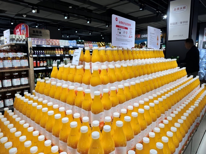 胖東來(lái)自有品牌專區(qū)首次亮相該店,DL果汁、DL精釀啤酒、DL花生油等幾十余款商品集中陳列,讓大興消費(fèi)者在家門口即可體驗(yàn)胖東來(lái)品質(zhì)。