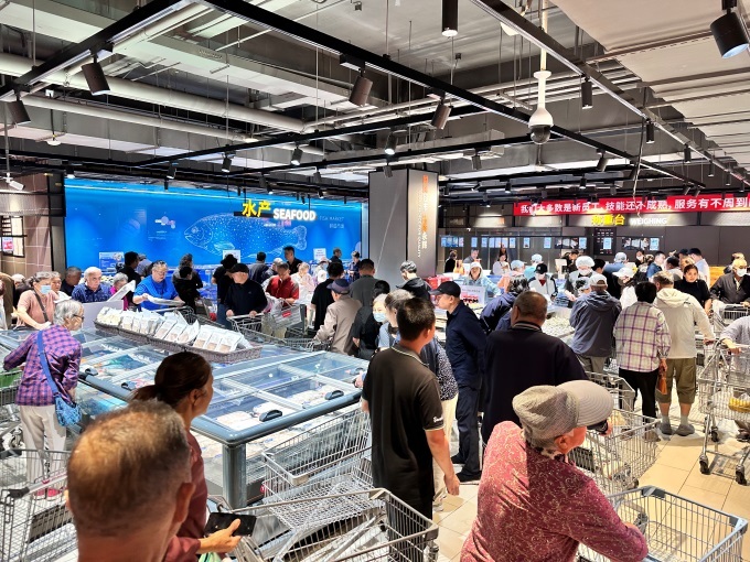 生鮮板塊強(qiáng)化源頭管控與品質(zhì)溯源。安格斯牛肉、潮汕牛肉、本地優(yōu)質(zhì)肉禽等豐富蛋白源同臺(tái)亮相;海鮮區(qū)實(shí)現(xiàn)“24小時(shí)鮮活到店”,梭子蟹、鲅魚、三文魚等組成豐富水產(chǎn)矩陣;來(lái)自新疆、云南等地的特色水果通過(guò)高效物流實(shí)現(xiàn)72小時(shí)內(nèi)從產(chǎn)地到貨架。