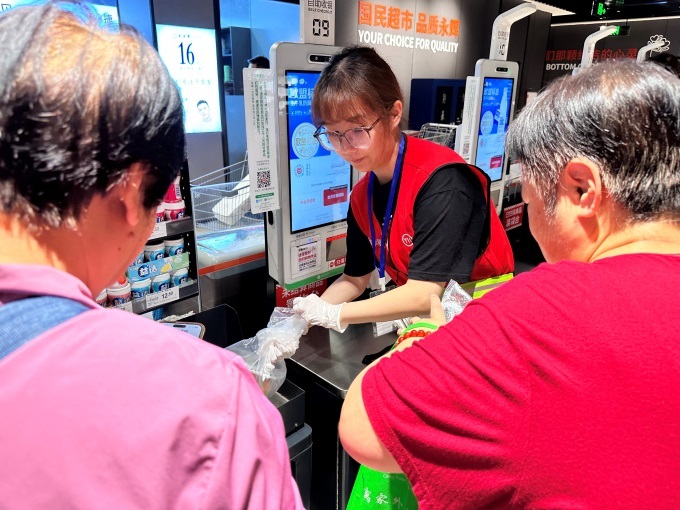 細(xì)節(jié)服務(wù)彰顯溫度:食品貨架配備放大鏡,方便老年顧客閱讀信息;連卷袋配備濕手器,解決手濕難撕袋問(wèn)題;冷鏈區(qū)域配備防凍手套,海鮮區(qū)提供防刺手套;果切組合按甜度標(biāo)注食用順序,購(gòu)買整個(gè)西瓜、榴蓮等可享免費(fèi)剝切服務(wù)。