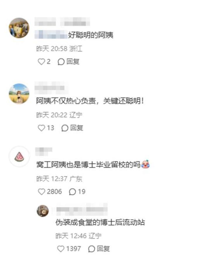 記者了解到,這位阿姨是大連理工大學(xué)博留食堂的楊阿姨(化名)。網(wǎng)友們戲稱想出此妙招的楊阿姨是“博士畢業(yè)”,雖然她本人并非博士,但她的一個(gè)女兒已從北大博士畢業(yè),另一個(gè)女兒正在大工攻讀博士學(xué)位。