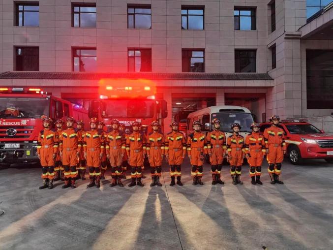 9月27日清晨,定西市消防救援支隊(duì)集結(jié)前往地震受災(zāi)區(qū)域。新華社發(fā)(甘肅省消防救援總隊(duì)供圖)