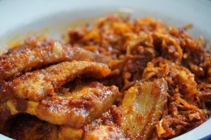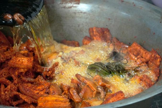 做好的這道菜色澤油亮,肉質(zhì)醇厚卻不油膩,蘿卜絲吸滿了肉汁,咸香中帶著微辣和回甘,入口口感豐富。只需舀一勺拌進(jìn)熱騰騰的白米飯里,辣味不沖喉,香味沁入骨髓,瞬間勾起食欲,連吃兩碗飯都不在話下。怪不得隴川人常說(shuō):“少了這兩口,飯都不香了?!?/p>