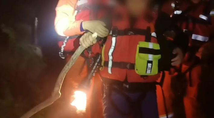 接到報警后,消防員攜帶救援裝備,歷時2個多小時搜尋,最終成功找到被困男子,并將其安全送下山。