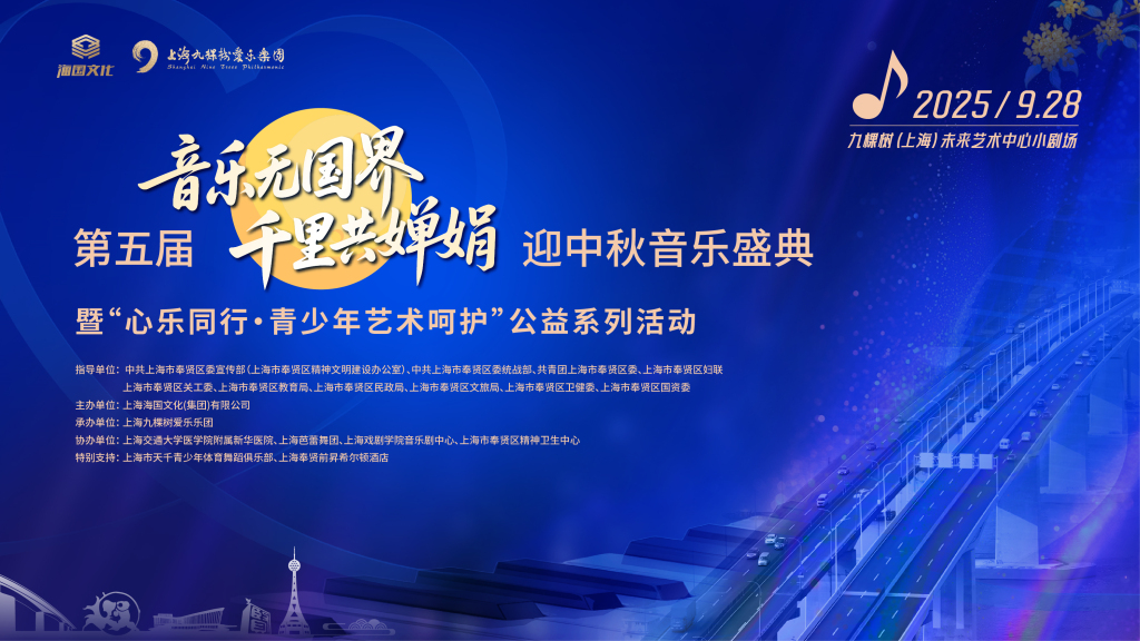 9月28日,一場跨界融合的音樂盛宴——第五屆“音樂無國界·千里共嬋娟”迎中秋音樂盛典暨“心樂同行·青少年藝術(shù)呵護”公益音樂會,即將在九棵樹(上海)未來藝術(shù)中心實驗劇場拉開帷幕。這場音樂會由上海海國文化(集團)有限公司主辦,國際指揮大師、樂團藝術(shù)總監(jiān)湯沐海將攜手上海九棵樹愛樂樂團的中外音樂家以及社會各界藝術(shù)家共同呈現(xiàn)。在延續(xù)往屆國際視野、藝術(shù)性特點與“迎中秋”傳統(tǒng)主題的基礎(chǔ)上,本屆音樂會進一步突出了社會公益性,特別關(guān)注青少年的健康成長。它將以音符為橋梁,跨越地域與文化的界限,融合傳統(tǒng)與現(xiàn)代、民族與西洋音樂元素,共同奏響一曲關(guān)于和諧與共融的動人樂章。