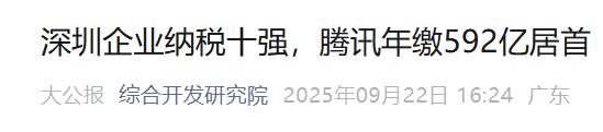 據(jù)大公報(bào)、中國(guó)(深圳)綜合開發(fā)研究院近日消息,2024年深圳納稅十強(qiáng)企業(yè)依次為:騰訊(納稅592億元)、華潤(rùn)(納稅444億元)、招商銀行(320億元)、平安集團(tuán)(273億元)、比亞迪(228億元)、萬科(199億元)、華為(150億元)、深投控(58億元)、順豐(41億元),工業(yè)富聯(lián)(34億元)。(本數(shù)據(jù)僅供參考)
