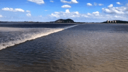 魚鱗潮是錢塘江全江段涌潮科考中發(fā)現(xiàn)的新潮景,可謂新晉“網(wǎng)紅”。在魚鱗潮產(chǎn)生之前,北南兩股一線潮平行推進(jìn),南快北慢,后北潮斜向西南,并演變成波紋潮,速度加快,再與南潮交叉,在波紋潮的波峰,因水深大,南潮白色破碎潮頭短暫消失,故而產(chǎn)生魚鱗狀,潮頭后面一段似魚鱗片狀。魚鱗潮多出現(xiàn)在嘉紹大橋附近。
