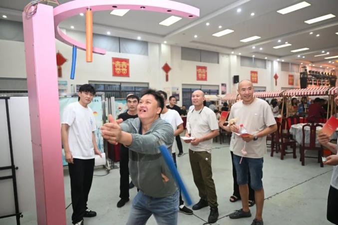 這邊民俗體驗溫馨和諧,那邊“互動游戲”區(qū)則競爭激烈?!白烂姹颉钡淖矒袈暋ⅰ按┰交鹁€”時的屏氣凝神、“眼疾手快”的歡呼聲交織在一起,職工們玩得十分開心,歡聲笑語驅(qū)散了白日的疲憊。