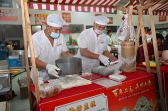 傍晚5點,活動還未正式開始,現(xiàn)場就已經(jīng)熱鬧起來。只聽“啪”的一聲扣壓聲,一籠籠熱氣騰騰的徐行蒸糕新鮮出爐,糯米的香味瞬間吸引了眾多食客排起長隊;隔壁吹糖人攤位前,老師傅手腕靈活轉(zhuǎn)動,鼓腮慢吹,琥珀色的糖漿就變成了靈動的小動物,引得圍觀職工陣陣喝彩;捏泥塑、烘焙、水果等20多個攤位前也都圍滿了人。