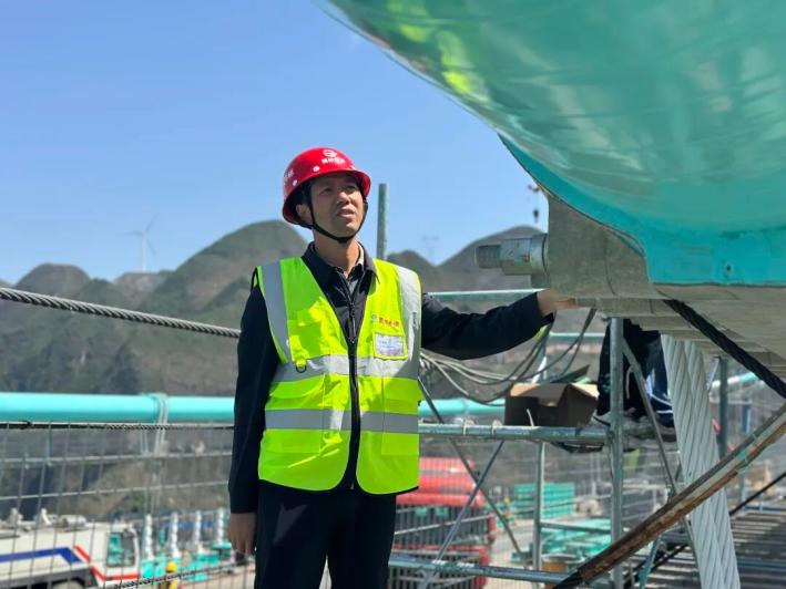 在工地上,康紹勇的‘較真’程度不輸給李平安。橋面施工離江面600多米,安全是底線,他會(huì)逐個(gè)檢查管道加固情況,一個(gè)小零件松動(dòng)都要馬上修理;在質(zhì)量上更是嚴(yán)格,從模板搭建到混凝土澆筑,每天都在工地上轉(zhuǎn)好幾圈。