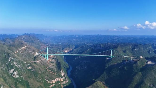 花江峽谷,山高水急,峽谷深度達(dá)千米,被地質(zhì)學(xué)家稱作‘地球裂縫’。由貴州交投集團(tuán)所屬橋梁集團(tuán)承建的花江峽谷大橋,橋面高達(dá)625米、主跨達(dá)1420米,創(chuàng)下高度和主跨兩項(xiàng)‘世界之最’。