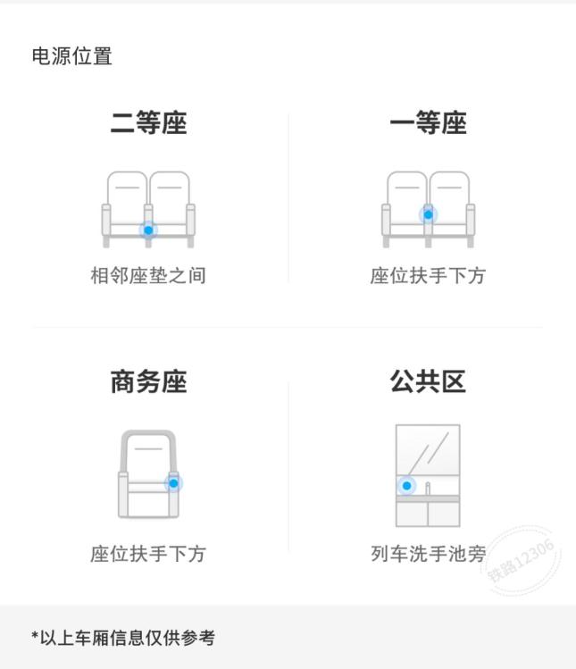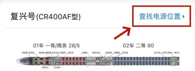 如果不清楚自己乘坐的列車是什么車型,可以打開鐵路12306App首頁,點擊“時刻表”——輸入“車次號”“出發(fā)日期”——點擊“查詢”——點擊“查找電源位置”,即可查詢到充電插座位置。