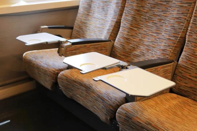 小桌板不在前面座椅背后?有些車型的二等座座椅小桌板設(shè)置在座椅扶手內(nèi)側(cè),輕輕一扳,拉開就能用。