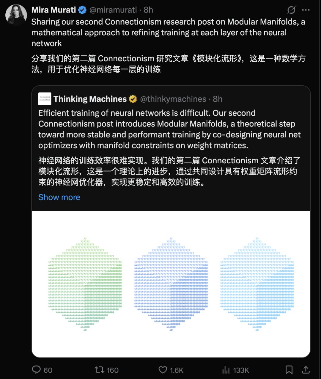 近日,由OpenAI前CTO Mira Murati創(chuàng)辦的Thinking Machines Lab再次發(fā)布研究成果。這是他們繼《克服LLM推理中的不確定性》之后的第二篇研究文章——《模塊流形》。