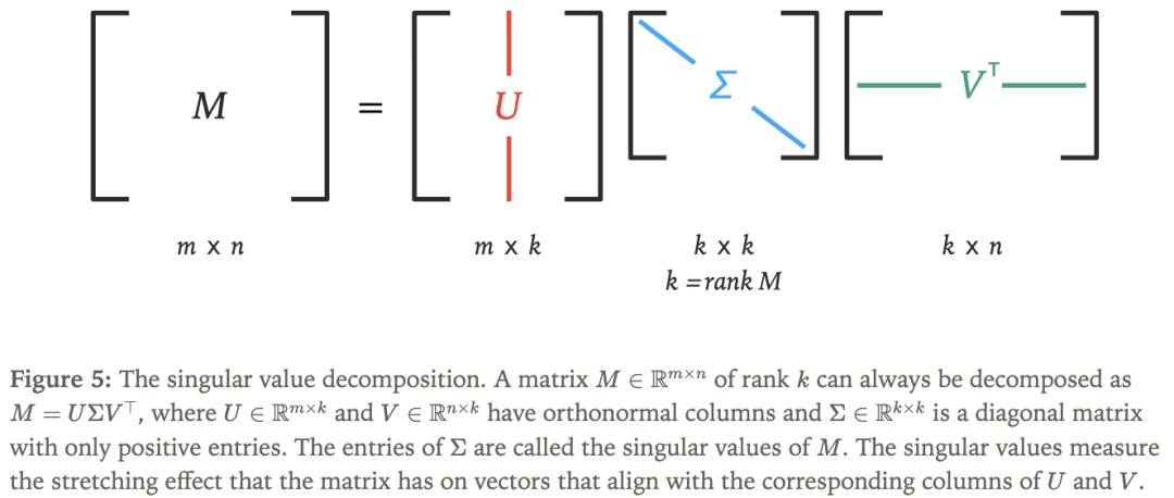 使用奇異值分解(SVD)是思考矩陣如何作用于向量的好方法,如圖 5 所示。SVD以分解矩陣的方式顯示矩陣如何沿著不同的軸拉伸輸入向量。