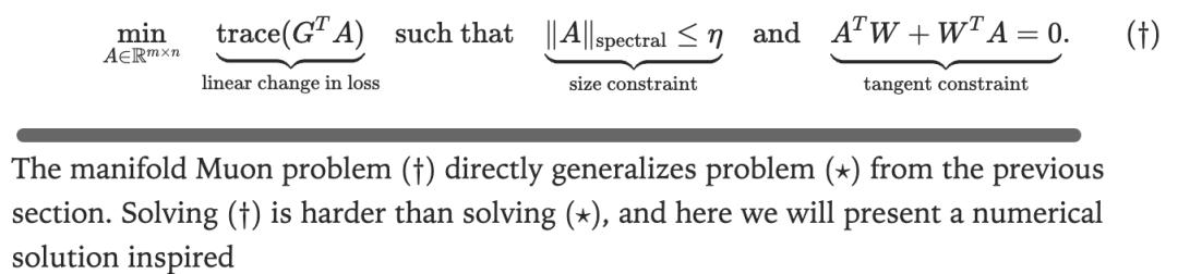 這一想法與Stiefel流形約束結(jié)合后,形成了「manifold Muon」問題。