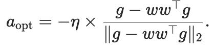 用g表示梯度, w表示超球面上的當前點, a表示更新方向, η表示學(xué)習(xí)率,我們需要解決的問題是: