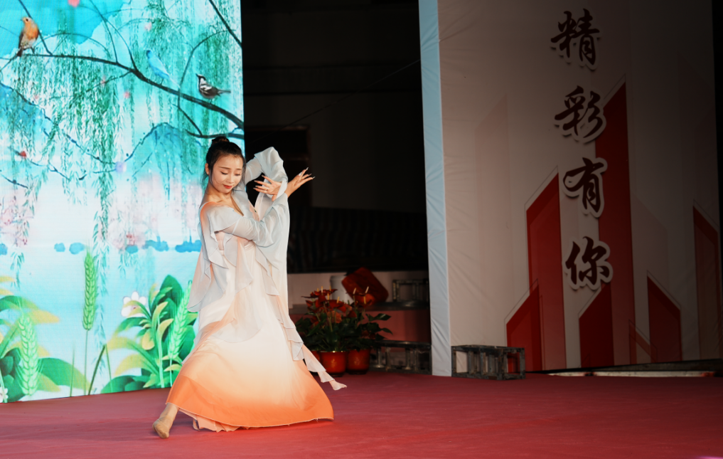 晚上六點(diǎn)半,文藝演出正式開始?!栋鏁鴼g迎你》《生機(jī)勃勃》《版書鎮(zhèn)非遺文化展演》等精彩節(jié)目依次登場(chǎng),傳統(tǒng)文化的獨(dú)特魅力讓觀眾陶醉。此次演出緊扣“慶國(guó)慶 過中秋”主題,10個(gè)節(jié)目由各單位精心選送,涵蓋歌曲、樂器、書法、舞蹈等多種類型。