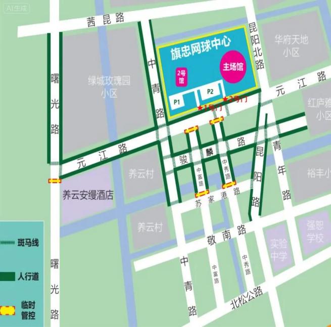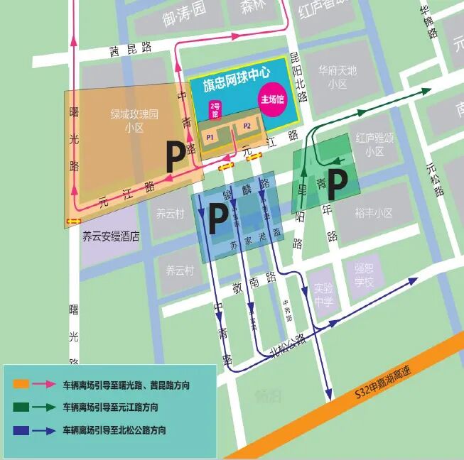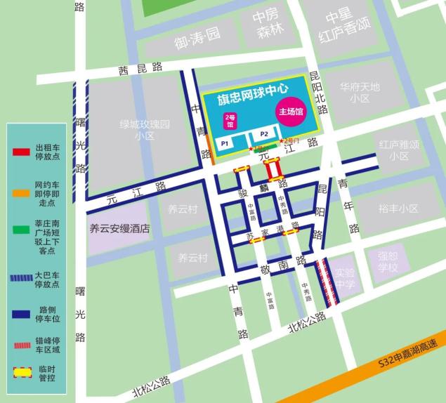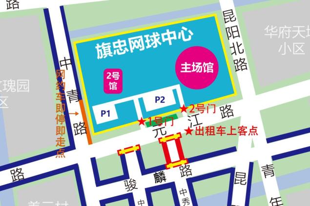 乘出租車的朋友從場館2號門出,過元江路就是上客點;選網(wǎng)約車的觀眾沿元江路向西步行至中青路右轉(zhuǎn),即網(wǎng)約車即停即走點。