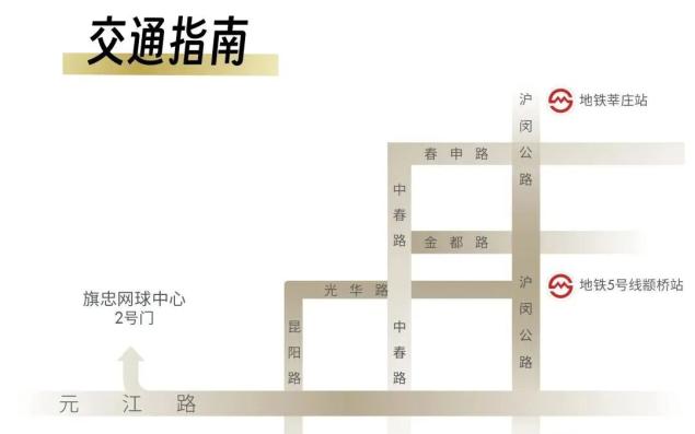 比賽場地久事體育場館旗忠網(wǎng)球中心位于上海市閔行區(qū)元江路5500號,除預約ACE萌友天地的觀眾外,其他觀眾從2號門進入。倡導大家選擇綠色出行!