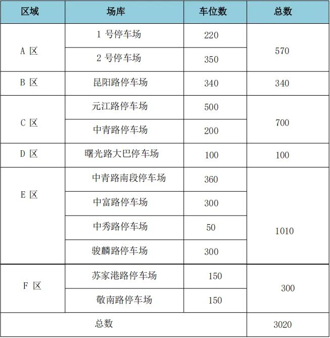 F區(qū)在其他停車區(qū)域接近飽和時啟用,蘇家港路、敬南路南北兩側車道可停車。
