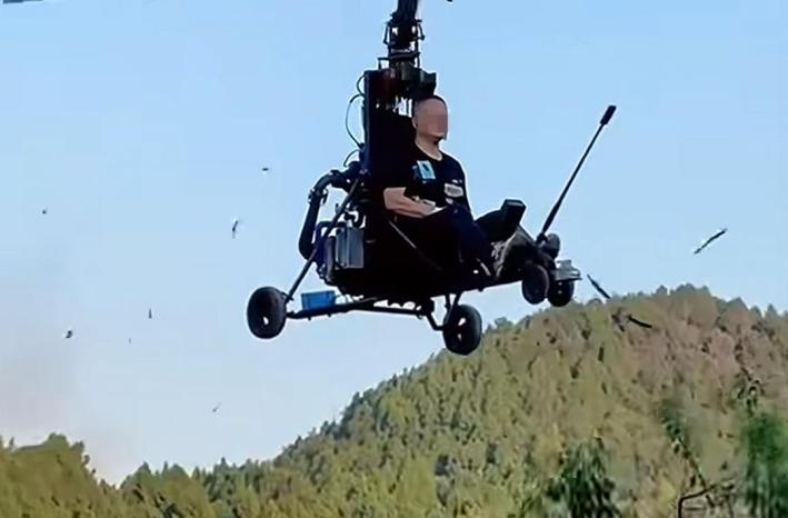去年,他花費35萬元購入一架“共軸雙槳超輕型飛機”,該飛機加滿油能續(xù)航40公里,最高飛行速度約100公里/小時。